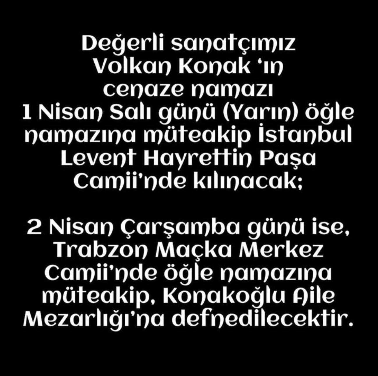 Volkan Konak, ın “Siz sevenlerime vasiyetimdir, ne olur ben ölünce gömmesinler beni toprağa. Yaksınlar benim tüm bedenimi. Ve bir kutuya koyup Karadeniz’imin üstüne bir helikopterle savursunlar tüm küllerimi. Özellikle de Trabzon’umun üstüne.” Vasiyeti üzerine krematoryum tartışmaları yeniden alevlendi.